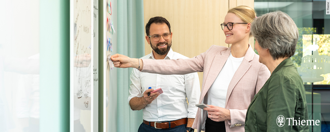 Die Thieme Gruppe ist marktführender Anbieter von Informationen und Services, die dazu beitragen, Gesundheit und Gesundheitsversorgung zu verbessern. Mit digitalen Lösungsangeboten in Medizin und Chemie unterstützt Thieme Informations- und Kommunikationsprozesse in Wissenschaft, Aus-, Fort- und Weiterbildung sowie in der Patientenversorgung. Gemeinsam mit einem breiten Experten- und Partnernetzwerk stellt der digitale Gesundheitsdienstleister sicher, medizinisch-wissenschaftlich, aber auch didaktisch-technologisch Taktgeber zu sein. Die weltweit tätigen über 1000 Mitarbeitenden des Familienunternehmens setzen sich mit innovativen Neu- und Weiterentwicklungen tagtäglich für eine bessere Medizin und mehr Gesundheit im Leben ein.